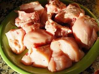 2. Trocear y quitar la piel y la grasa del pollo.