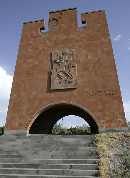 Monumento-Memorial realizado en toba roja, camino deEchmiadzin, provincia de Armavir. Conmemora la lucha de un pequeño pueblo a orillas del Mediterráneo, ahora en tierras de Turquía. Este mítico pueblo o pueblos se recuerdan con el nombre de Musaler (Armenia Occidental).